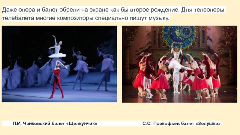 Слайд 8Даже опера и балет обрели на экране как бы второе рождение.