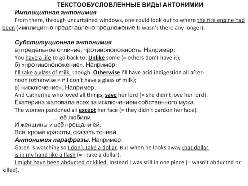 Слайд 6ТЕКСТООБУСЛОВЛЕННЫЕ ВИДЫ АНТОНИМИИ