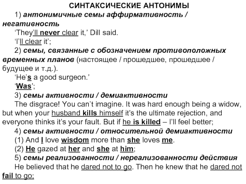 Слайд 4СИНТАКСИЧЕСКИЕ АНТОНИМЫ