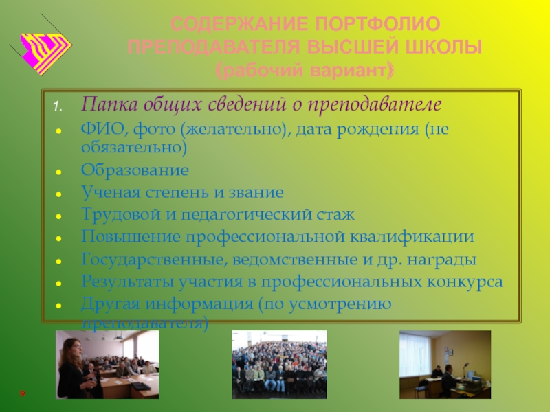 Авторская коллекция свидетельств, идей, документов и артефактов преподавателя, собранные за определенный период времени