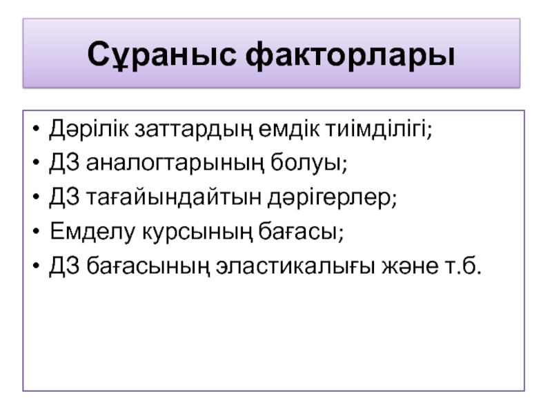 Слайд 8Дәрілік заттарға бағаның қалыптасуына әсер ететін факторлар