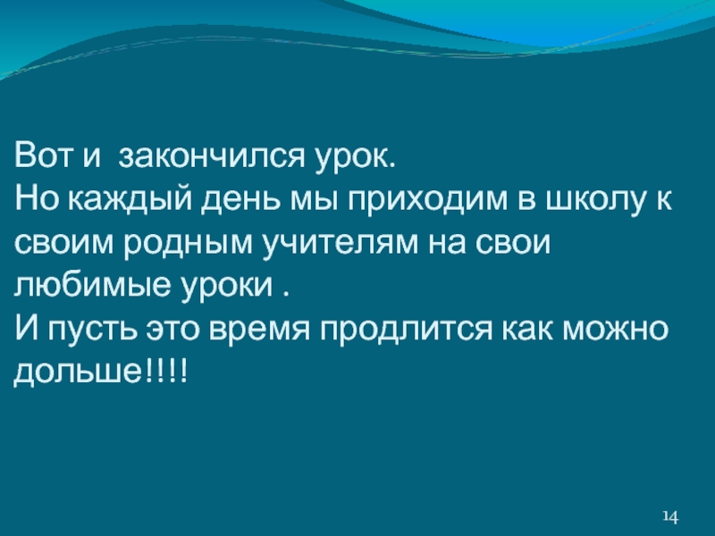 Слайд 14Вот и закончился урок. Но каждый день мы приходим в школу к