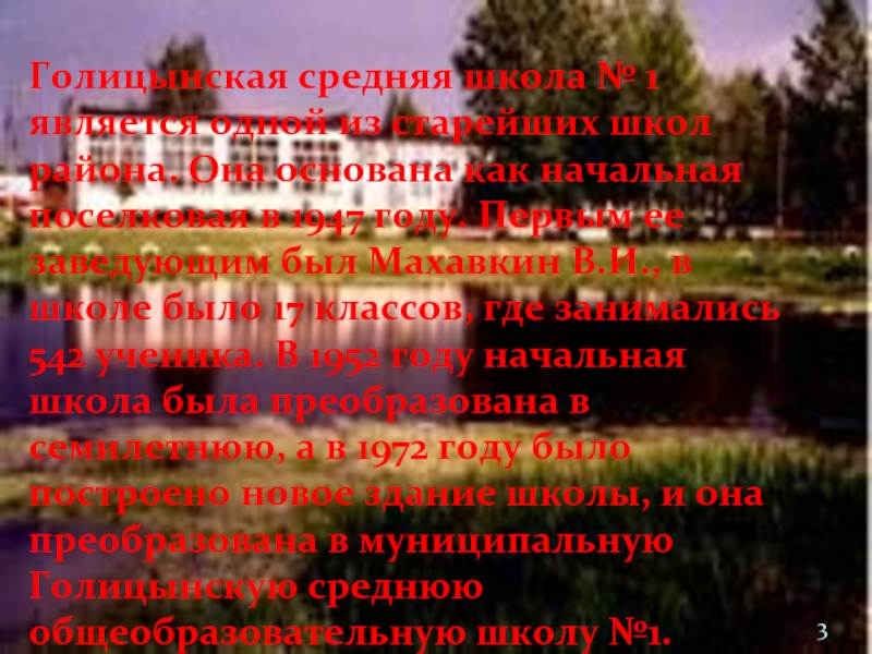 Голицынская средняя школа № 1 является одной из старейших школ района.