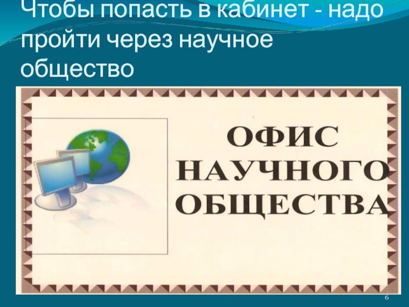 Слайд 6Чтобы попасть в кабинет - надо пройти через научное общество