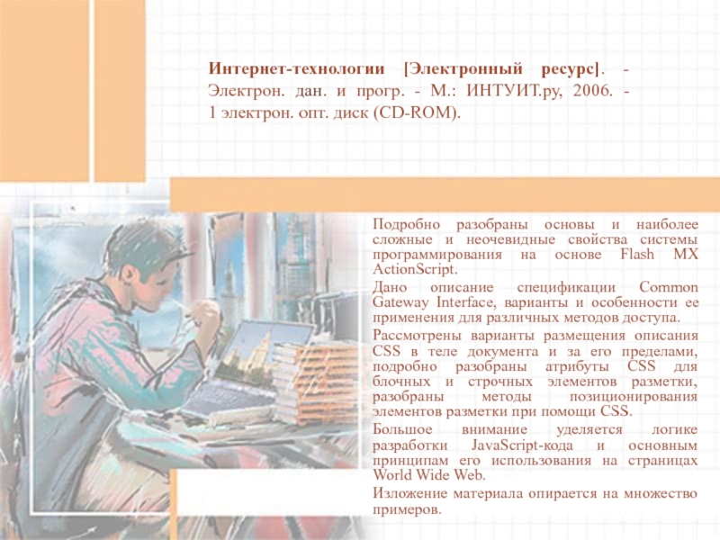 Подробно разобраны основы и наиболее сложные и неочевидные свойства системы программирования на основе Flash MX ActionScript.