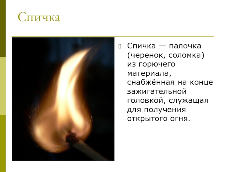 Спичка — палочка (черенок, соломка) из горючего материала, снабжённая на конце