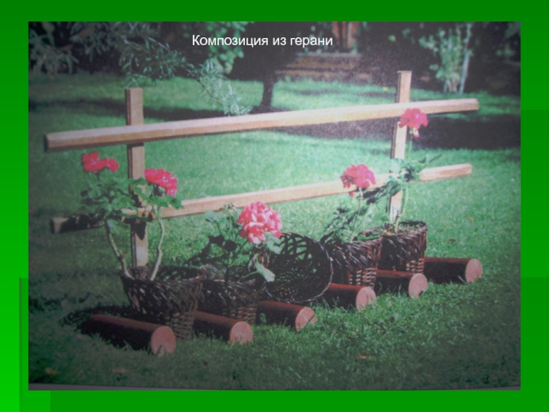 Слайд 10Садовая композиция: старый чугун, корзина и камень