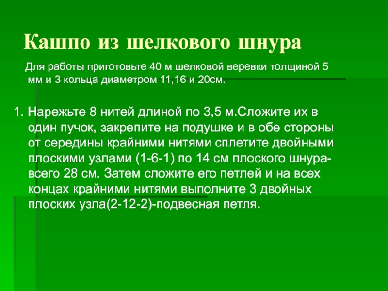 Слайд 4Кашпо из шелкового шнура