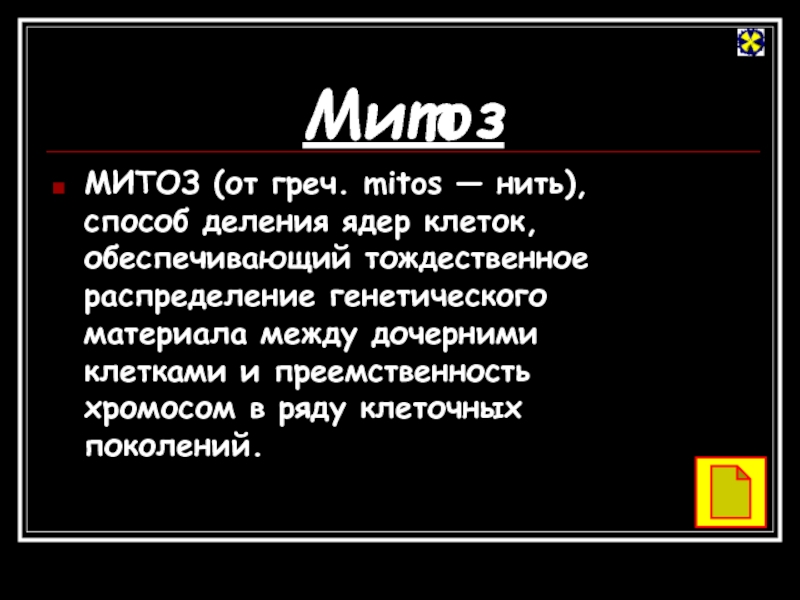 МИТОЗ (от греч. mitos — нить), способ деления ядер клеток, обеспечивающий