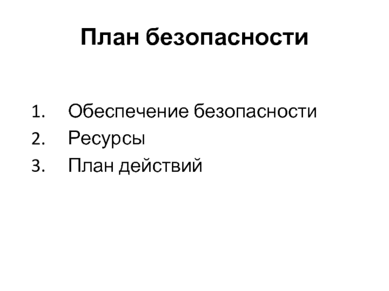 Слайд 34План безопасности (1)