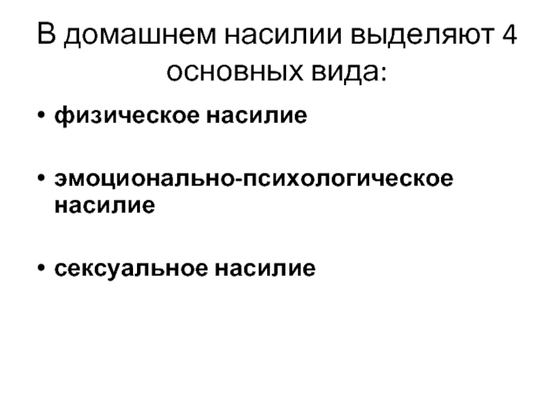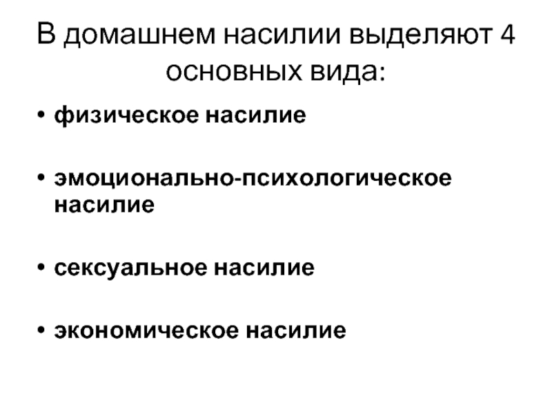 Слайд 20В домашнем насилии выделяют 4 основных вида: