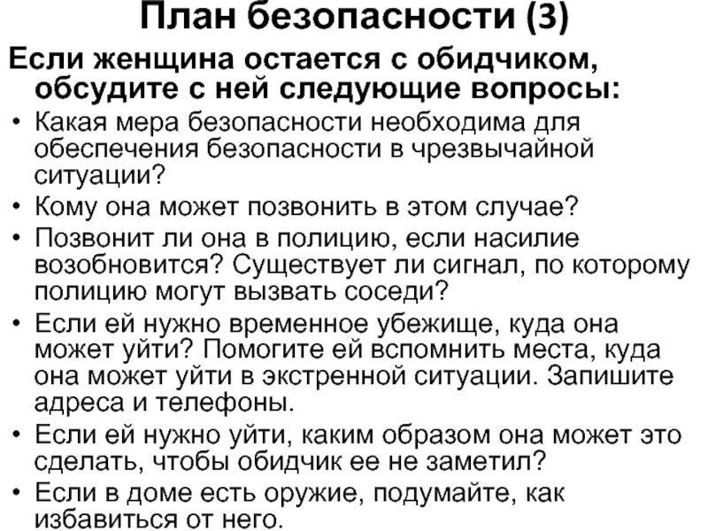 Если женщина остается с обидчиком, обсудите с ней следующие