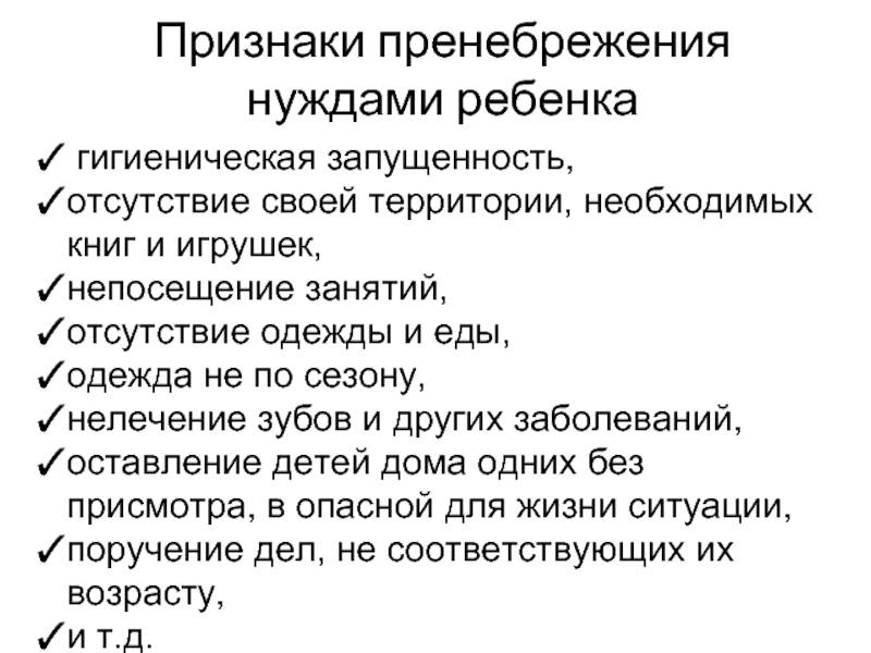 Слайд 25Признаки пренебрежения