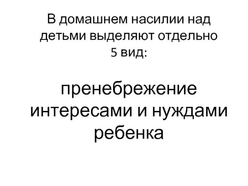 Слайд 24В домашнем насилии над детьми выделяют отдельно