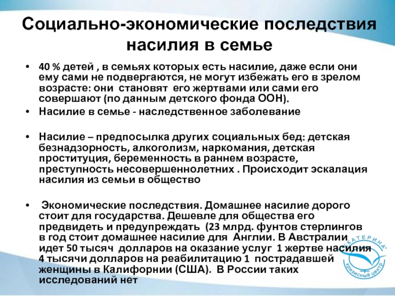 Слайд 8Социально-экономические последствия насилия в семье