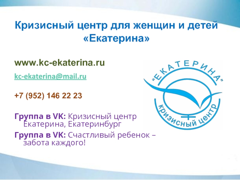 Слайд 12Кризисный центр для женщин и детей «Екатерина»
