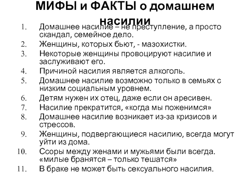 Слайд 33МИФЫ и ФАКТЫ о домашнем насилии