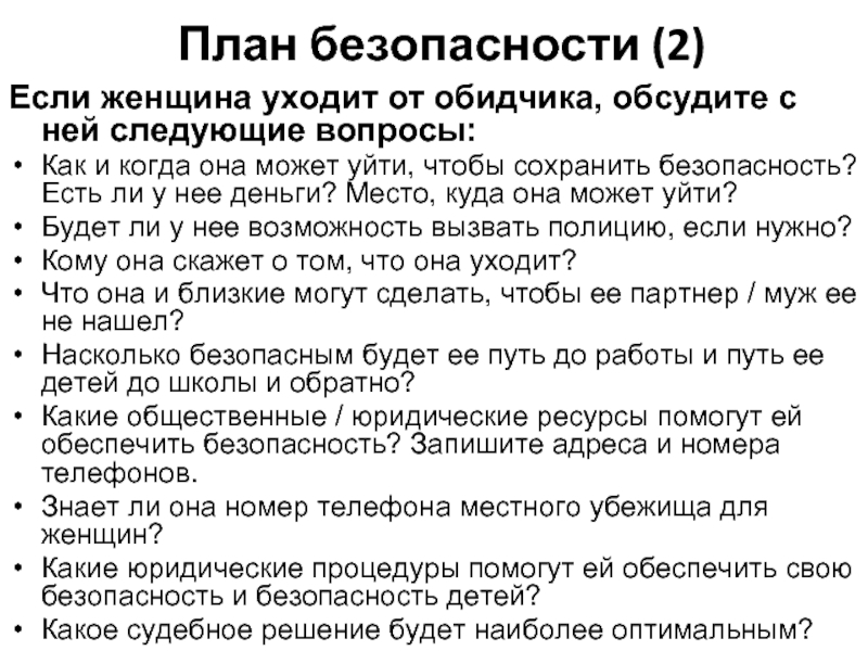 Если женщина уходит от обидчика, обсудите с ней следующие