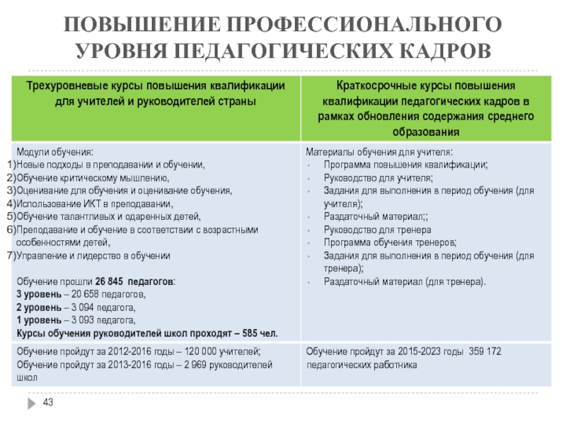 Слайд 43ПОВЫШЕНИЕ ПРОФЕССИОНАЛЬНОГО УРОВНЯ ПЕДАГОГИЧЕСКИХ КАДРОВ