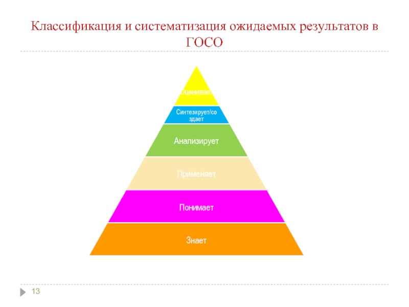 Слайд 13Классификация и систематизация ожидаемых результатов в ГОСО