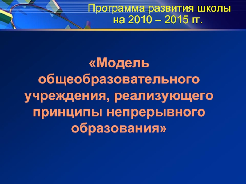 * Настоящая Программа развития школы (далее Программа) определяет стратегию и приоритетные направления развития школы на 2011-2015 годы. Программа предназначена для обеспечения перевода школы в новое состояние, обеспечивающее качество образования, адекватное потребностям развивающейся личности, государства и общества.