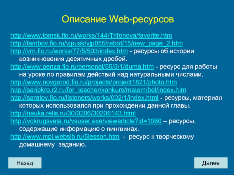 http://saratov.fio.ru/listeners/works/002/1/index.html - ресурсы, материал которых использовался при прохождении данной главы.