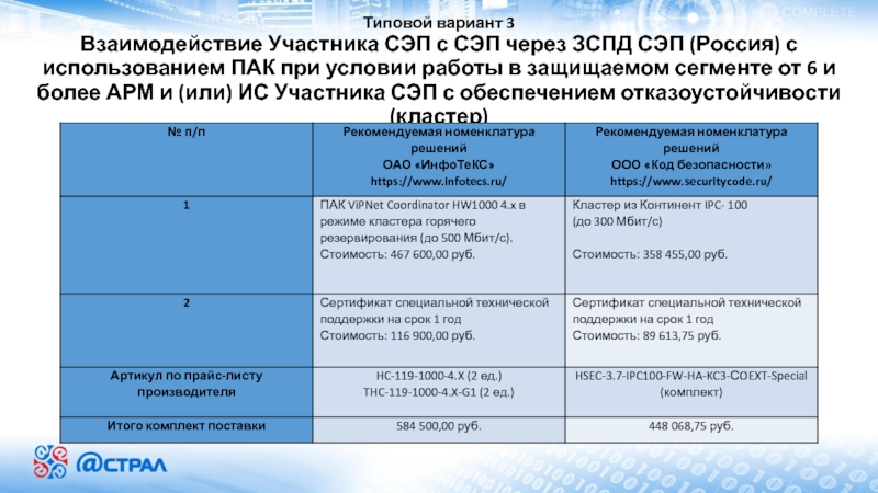 с использованием ПАК при условии работы в защищаемом сегменте от 6 и более АРМ и (или) ИС Участника СЭП с обеспечением отказоустойчивости (кластер)