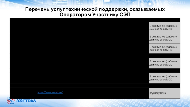 Слайд 6Перечень услуг технической поддержки, оказываемых Оператором Участнику СЭП