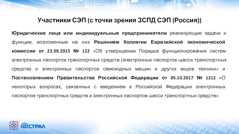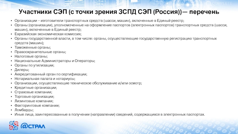Слайд 4Участники СЭП (с точки зрения ЗСПД СЭП (Россия))— перечень