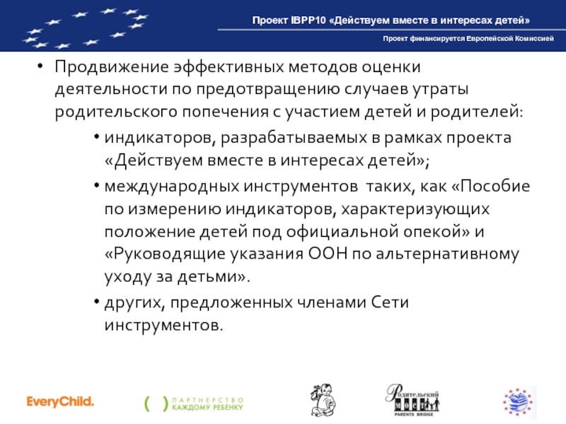 Слайд 7Продвижение эффективных методов оценки деятельности по предотвращению случаев утраты родительского попечения