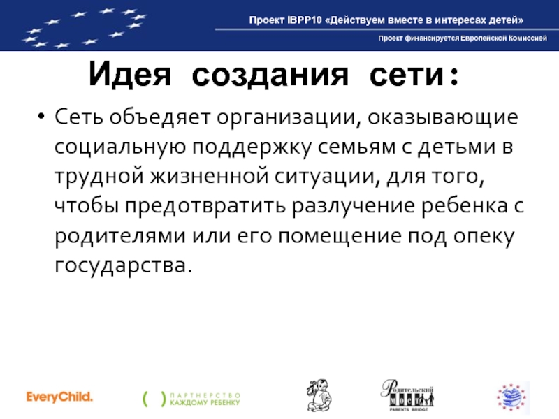 Сеть объедяет организации, оказывающие социальную поддержку семьям с детьми