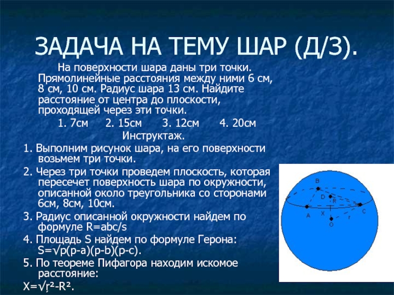 Слайд 9ЗАДАЧА НА ТЕМУ ШАР (Д/З).