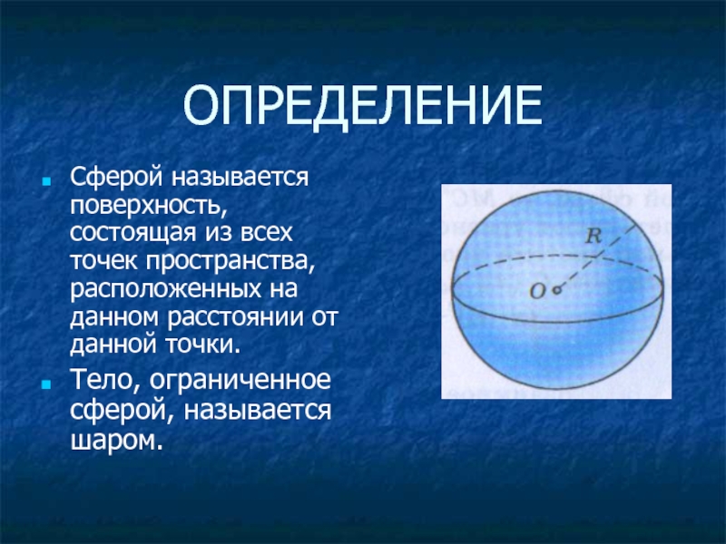 Сферой называется поверхность, состоящая из всех точек пространства, расположенных на данном