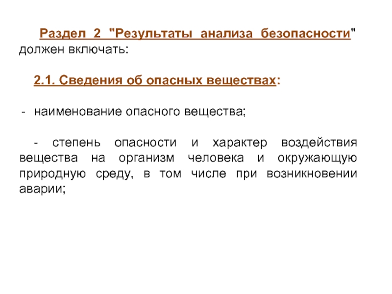 Слайд 13 Раздел 2 "Результаты анализа безопасности" должен включать: