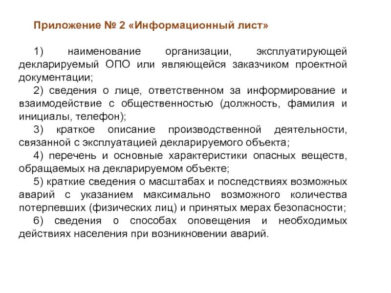 приложение № 1 "Расчетно-пояснительная записка";-- приложение № 2 "Информационный лист".