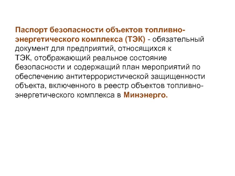 Слайд 24Паспорт безопасности объектов топливно-энергетического комплекса (ТЭК) - обязательный документ для предприятий, относящихся