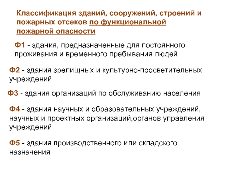 Слайд 3Классификация зданий, сооружений, строений и пожарных отсеков по функциональной пожарной опасности