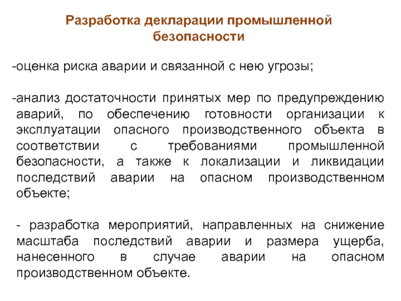 разработки мероприятий по снижению риска и смягчению последствий чрезвычайных ситуаций на опасном объекте.