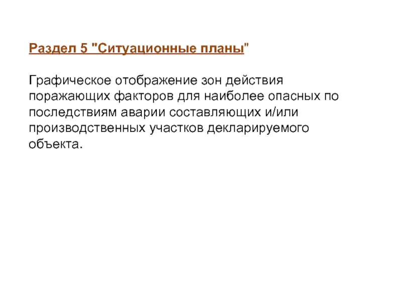 - данные о размерах вероятных зон действия поражающих факторов для описанных сценариев аварии;
