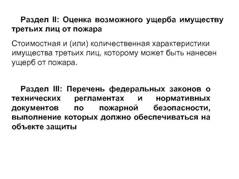Слайд 6Раздел II: Оценка возможного ущерба имуществу третьих лиц от пожара