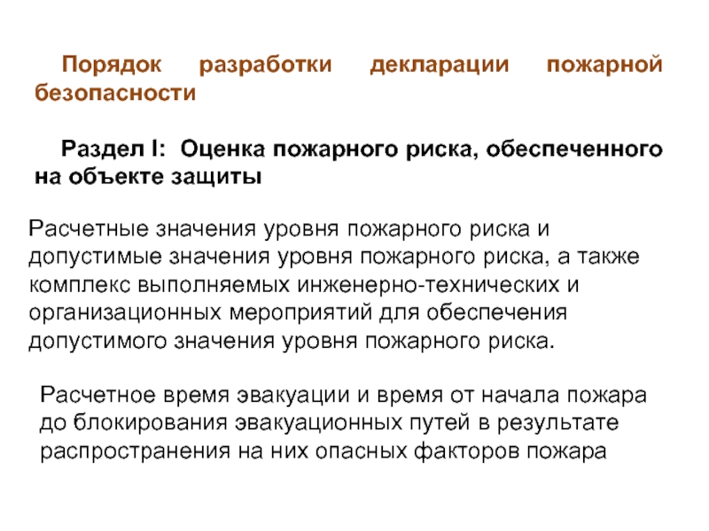 Раздел I: Оценка пожарного риска, обеспеченного на