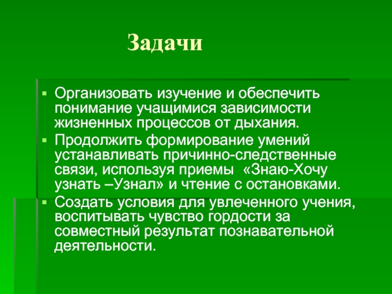 понимание учащимися зависимости жизненных процессов от дыхания.