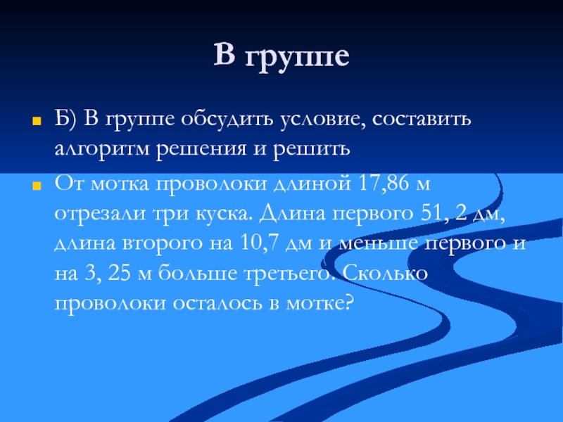 Б) В группе обсудить условие, составить алгоритм решения и решить