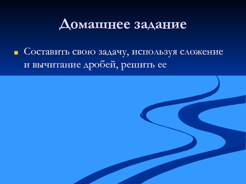 Составить свою задачу, используя сложение и вычитание дробей, решить ее
