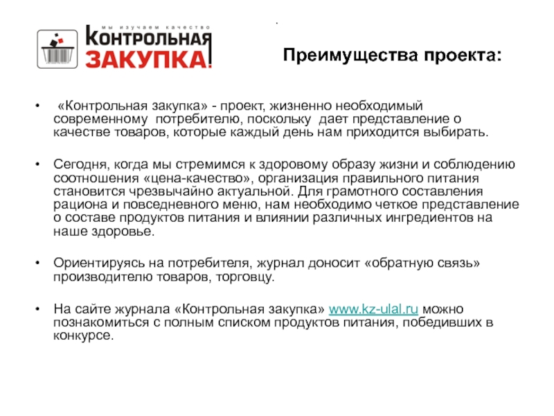 На сайте журнала «Контрольная закупка» www.kz-ulal.ru можно познакомиться с полным списком продуктов питания, победивших в конкурсе.