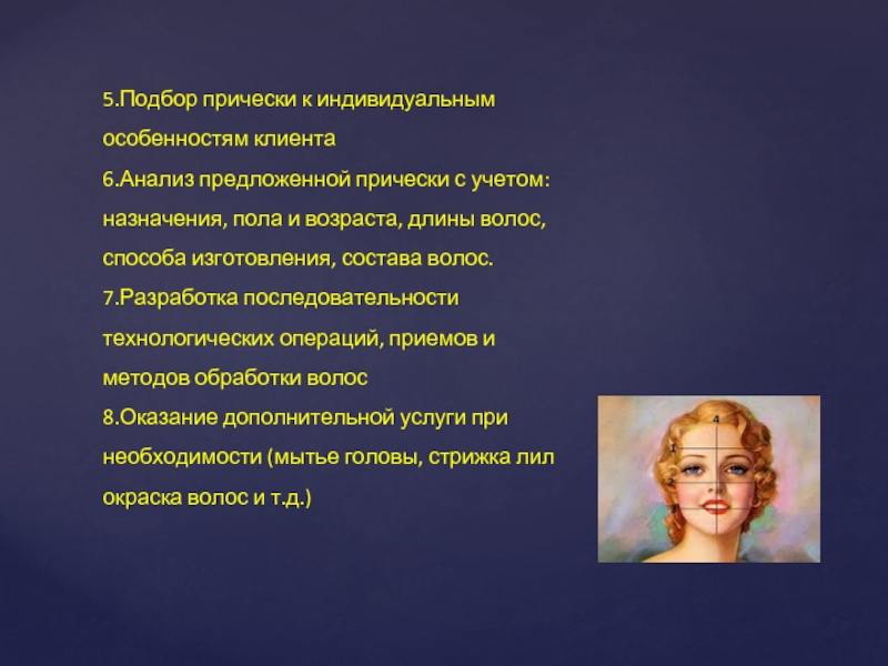 Слайд 35.Подбор прически к индивидуальным особенностям клиента