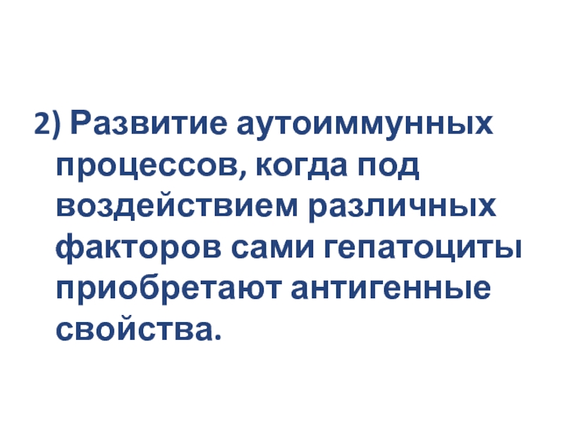 Слайд 102) Развитие аутоиммунных процессов, когда под воздействием различных факторов сами гепатоциты