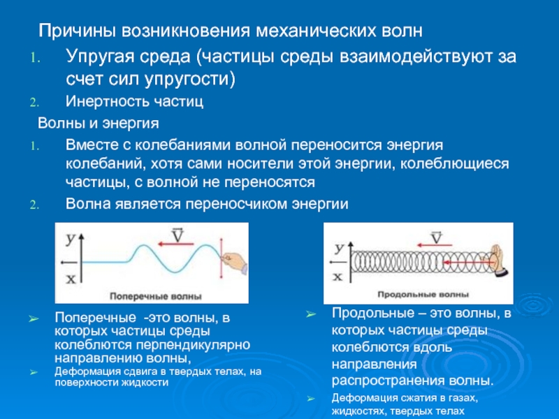 Продольные – это волны, в которых частицы среды колеблются вдоль направления распространения волны.