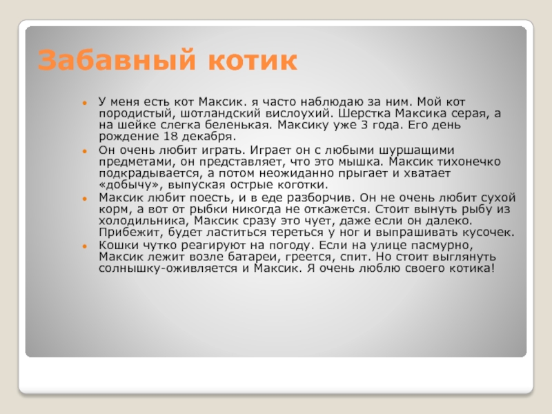 У меня есть кот Максик. я часто наблюдаю за ним.