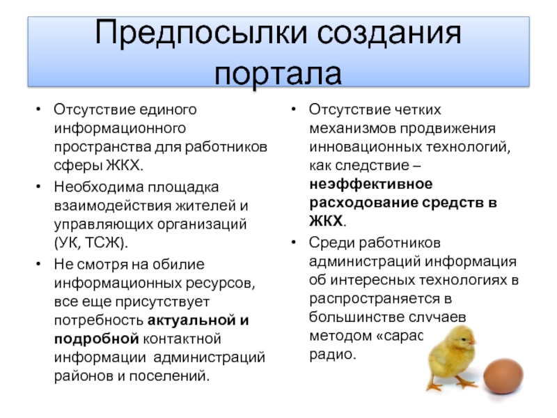 Отсутствие четких механизмов продвижения инновационных технологий, как следствие – неэффективное расходование средств в ЖКХ.